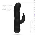 De Uncontrolled Rabbit Vibrator van EasyToys staat voor grenzeloos genot. De zwarte vibrator geeft het klassieke model van de tarzan vibrator een moderne twist met zijn volledig siliconen buitenkant. De sextoy heeft een zachte, gebogen top voor G-spot stimulatie en een flexibele clitorisstimulator. De vibrerende oortjes stimuleren de clitoris gericht met 3 snelheden en 7 vibratiesnelheden. Druk op de knop en ontdek je favoriete stand! De Uncontrolled Rabbit Vibrator is gemaakt van siliconen en daarom het best te combineren met een glijmiddel op waterbasis. Reinig de toy voor en na gebruik met toycleaner.